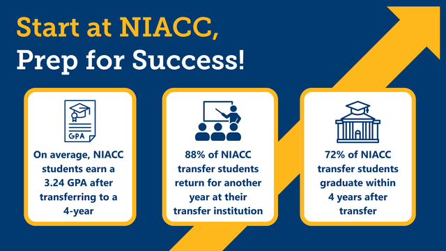 As we celebrate National Transfer Student Week, NIACC students are prepped for success after transferring – NIACC students who transferred to a four-year institution went on to earn an average GPA of 3.24 in their first term, with 88% returning for the next year.